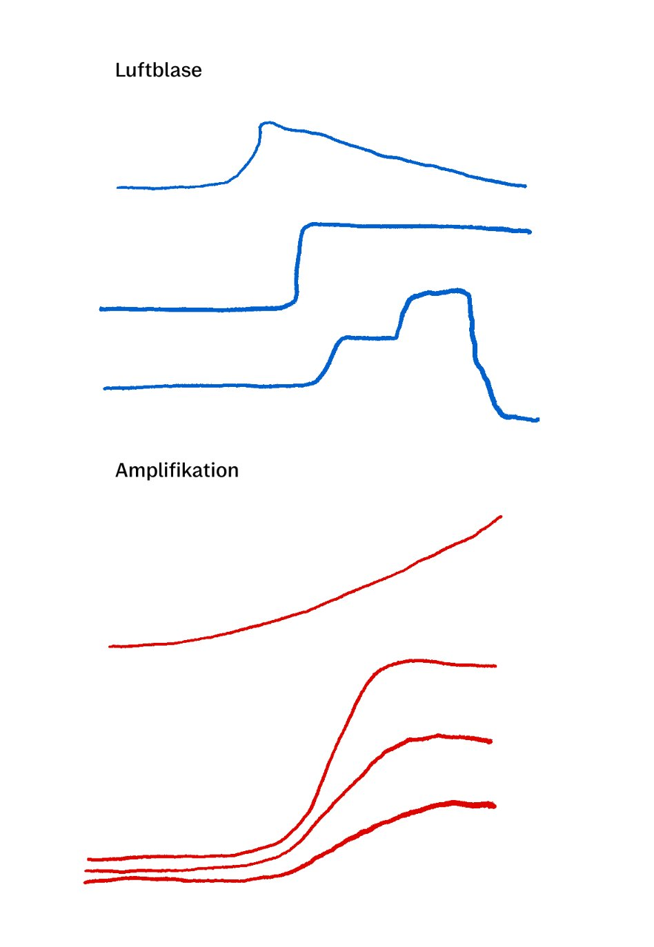 Air bubbles (incompletely filled reaction chambers) can cause invalid reaction curves which increase suddenly or jump around, due to optical refraction effects. These can even cause false positive results.